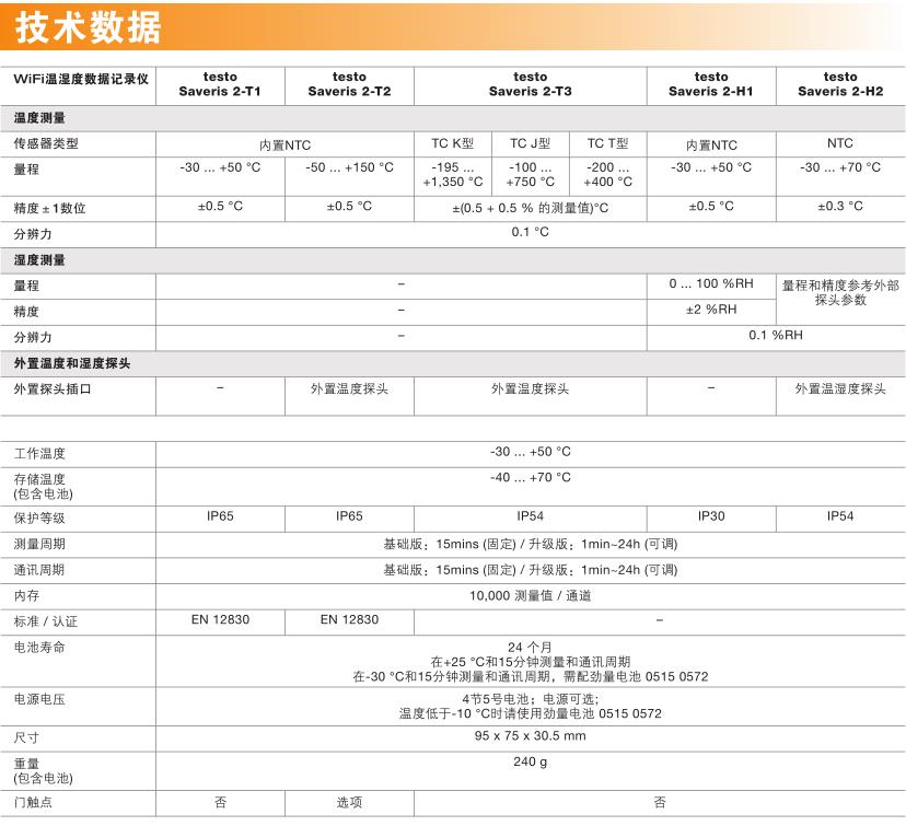 型號 testo Saveris 2 T1 WiFi溫濕度記錄儀 testo Saveris 2 T2 WiFi溫濕度記錄儀 testo Saveris 2 T3 WiFi溫濕度記錄儀 testo Saveris 2 H1 溫濕度記錄儀 testo Saveris 2 H2 WiFi溫濕度記錄儀