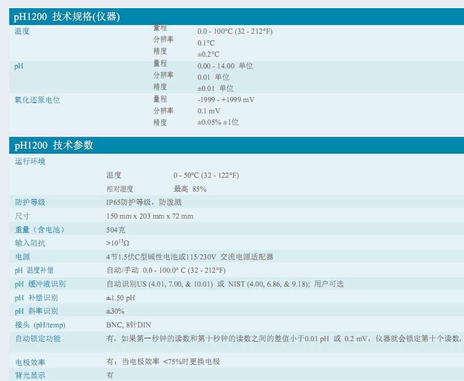 YSI 1200 實(shí)驗(yàn)室PH計(jì)技術(shù)參數(shù):